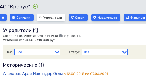 There are also offshore companies in the chain of empire, which the businessman does not disdain. For example, in Agalarov Estate LLC, a certain Silver Valley Consulting Corp, registered in the British Virgin Islands, has a 15.4% stake. Also, the offshore company, together with Crocus, was the owner of a couple more companies - Stroytsentr LLC and Investment and Construction Corporation LLC, which joined Agalarov Estate.