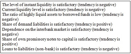 If we take the statistics for the last month, the picture is even worse. Three liquidity ratios (credit ratios H2, H3, H4) were in the red zone. The bank's risk index for its own promissory notes has increased. Analysts note negative tendency in five of the seven main indicators of liquidity at once.