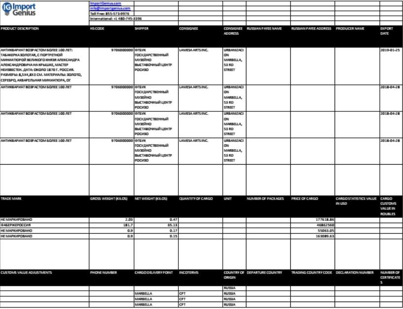 As The Moscow Post already wrote, the ROSIZO organization subordinate to the Ministry of Culture of the Russian Federation at the end of April 2018 sent a parcel with several packages worth $47 million for the bugle. The shipment was addressed to the Panamanian company Lamesa Arts Inc. Victor Vekselberg. The package contained antique items, one of which is identified as "Faberge Russia."