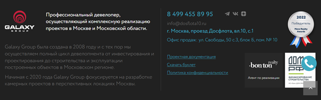 A little lower, in the hem of the article, it is written in small print that the developer is the specialized developer Capital-Invest JSC. Wait, what about the Galaxy Group? A company that positions itself on a site with objects that it built as "a professional developer carrying out comprehensive implementation of projects in Moscow and the Moscow region".