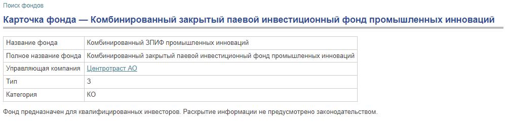 The managing company of the fund ZPIF "Industrial Innovation Fund" is the Joint-Stock Company "Central Trust Company" ("Centrotrast").