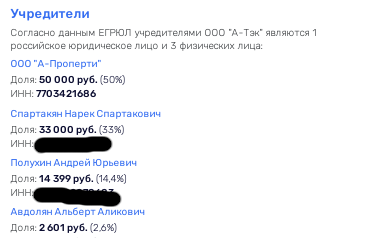 It fits into the overexposure transmission model the introduction of another "Avdolyan man" to the co-owners of A-Tek and Andrei Polukhin. Polukhin had a common asset - Fleshmober LLC with Eprem Exuzyan, the former director of Expatel Consulting LLC, which previously belonged to Igor Yuzefovich and Vitaly Salo, who appeared in a number of ambiguous stories. Among the founders of Expatel was Avdolyan.