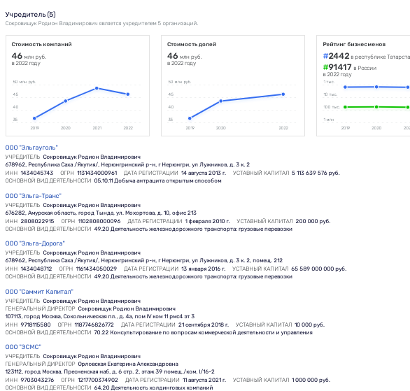 Treasure, in our opinion, can be called "Chemezov's man." The fact is that he headed the asset from the Rostec division - RT-Global Resources LLC, and the latter was one of the co-owners of a number of Avdolyan companies, including the aforementioned Port Vera Holding LLC. Rostec probably provided financing to partners for transactions to consolidate the coal Ogoja and the port of Vera. Indirectly, this is also supported by the fact that their shares were laid down in the structure of the state corporation RT-Business Development. It is the latter who also owns RT-Global Resources LLC, once headed by Treasure. Moreover, he was also the first deputy general director of RT-Business Development LLC, and today he is listed as the head of a large gas project in Yakutia and the Khabarovsk Territory - Globaltek LLC and a member of the board as director of YATEK.