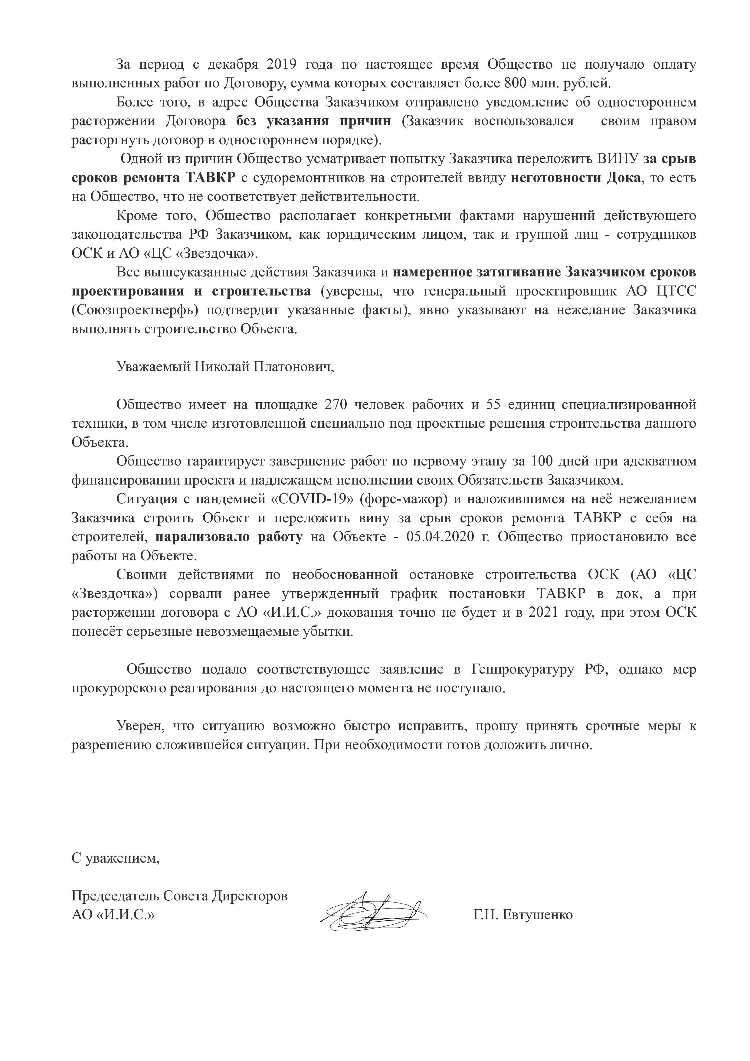 JSC I.E.C. received a contract for reconstruction in July 2019. Total cost of work: 23.9 billion rubles. But the Zvezdochka ship repair centre paid only 2.6 billion rubles of the promised advance of 7.1 billion rubles. Zvezdochka paid for the actual work performed only by 70 (seventy) million rubles.!!!