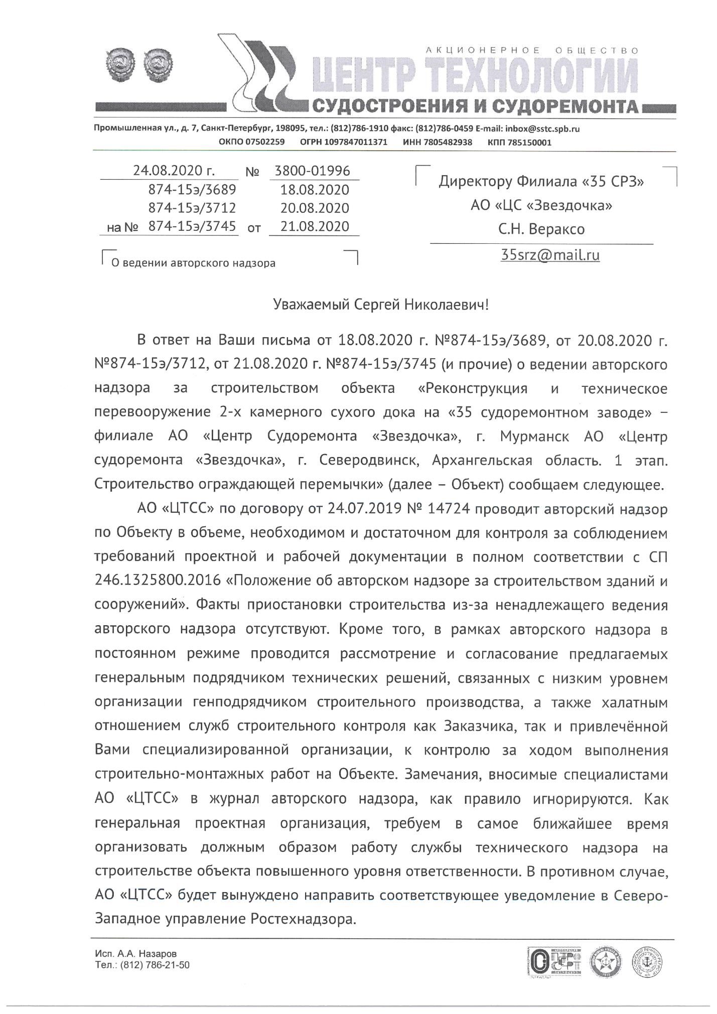 We reminded in our letter to both Sergey Marichev and Dmitry Galimov that it was for this reason that the general designer of the SSTC refused to carry out author's supervision. As a result, significant changes were made to the design, with critical deviations from the approved FAI Glavgosexpertiza.