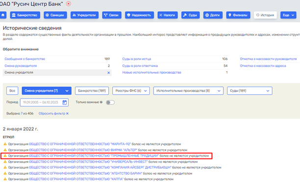The connection between the bank and the broker can be traced not only in this. According to Kommersant, General Director of Universal Invest Yuri Firdman for 2011 was the owner of a 2.75% stake in Rusich Center Bank and was also a member of its board of directors. According to the same data, at that time the co-owner of the bank Tatyana Shvachka (who owned 4.99% of the shares) was also a co-owner of Universal-Invest (1.05%).