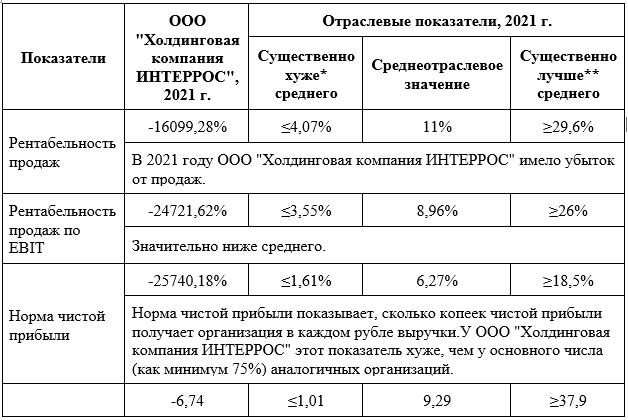 According to the document, if we pay attention to the coefficient of provision with own working capital, then Interros has a significantly worse average industry: at least 75% of organizations in 2021 had the best value.