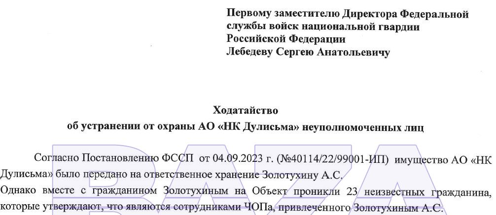 Dulisma, which owns an oil and gas condensate field in the Angara region, is in bankruptcy proceedings. Alexander Zolotukhin has been appointed manager. It was his eyewitnesses who saw in the company with unknown persons in masks, and the director of the oil company Sergei Savelyev in his statement clarified that it was he who was handed over the property of the oil company for safekeeping in early September. An important nuance: at the request of the same Zolotukhin, the court still at the end of July 2023, the court forbade the management of Dulisma, without Zolotukhin's written consent, to submit applications for the transportation of oil through the Transneft pipeline system. The management of the oil company tried to challenge these measures, but unsuccessfully. By the way, Transneft has also expressed its dissatisfaction, deciding to punish Dulisma with a fine of 270 million rubles.