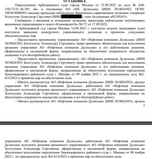 By the way, already on September 14, Zolotukhin in court demanded new interim measures for Dulisma, in fact, he tried to tie up the uninterrupted operation of the oil company. Everything would be fine, but the company was obliged to ensure uninterrupted operation a year ago and the company even worked, but payments were dissolved in the accounts of different legal entities.
