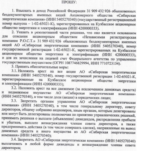 Later, according to the prosecutor, the management company - LLC SGK (Siberian Generating Company), in the interests of Kuzbassenergo, sent a mandatory offer for the redemption of securities to the nominal management of KhSRK, which was accepted. As a result, the shares concentrated in the hands of Kuzbassenergo.