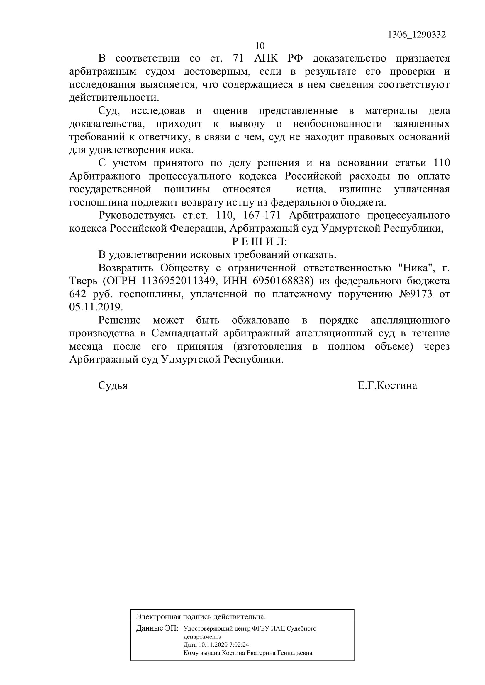 Therefore, the Arbitration Court of the Udmurt Republic decided to refuse to satisfy the claims.