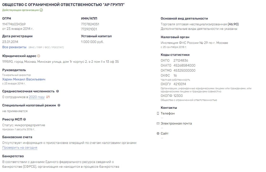 Decree of the Ministry of Internal Affairs "Tagansky" of 28.08. In 2020, AR Group LLC, represented by General Director Mikhail Vasilyevich Kharin, was recognized as a victim.