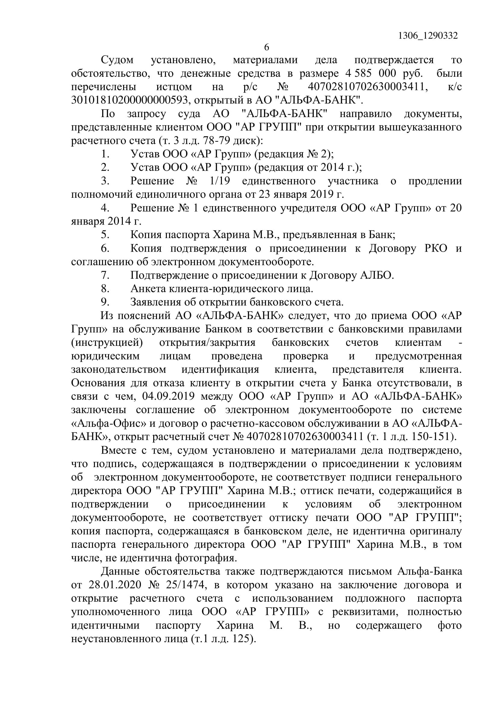 Mikhail Kharin, head of AR Group LLC, once again explained that the company did not conclude a bank account agreement with Alfa-Bank JSC.