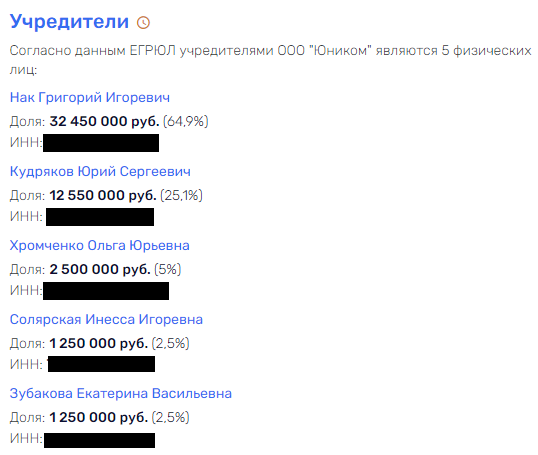 Among other things, Olga Khromchenko is a co-owner of another company called Unik LLC. Vesta with her and other persons, the owner of this office is Igor Nak, the son of the famous Tyumen deputy and United Russia member Grigory Nak.