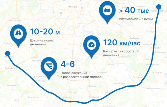 In February 2020, the Moscow Region government concluded a concession agreement with Lytkarinskaya Toll Road LLC, according to which the LLC pledged to build a toll high-speed road, linking the settlements of the Moscow Region Vidnoye, Lytkarino, Kraskovo, Tomilino, Zheleznodorozhny. The length of the road is 53 km, the width is 4-6 lanes.