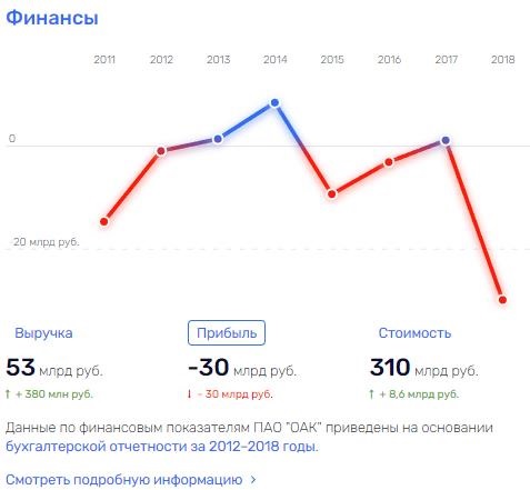 As for PJSC UAC, according to the results of the last reporting year (2018), instead of profit, it can "boast" of a huge financial hole - a loss of 30 billion rubles on revenue of 53 billion rubles.