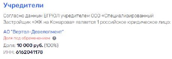 The general director of the Specialized Developer Residential Complex on Komarova 28 is Asker Khapaev, business partner of the head of the UAC Yuri Slyusar. Khapaev is the general director of Vertol-Development JSC, the founder of which is the son of Rostvertol general director Boris Slyusar, the head of the UAC Yuri Slyusar. Previously, Yuri he also worked in it as a commercial director. And it is Vertol-Development JSC that owns 100% of the developer.