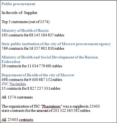 Pharmimex is regularly spotted in unsightly stories. According to the FAS report, last summer, the antimonopoly authorities recognized the State Medical Institution Regional Oncological Dispensary as violating the Law on Protection of Competition. The institution has created preferential conditions for participation in the auction, including by providing information about planned purchases in advance. In total, the company received contracts for 156 million rubles from the Dispensary. A year earlier, the head doctor of the medical institution was found guilty of taking a bribe, and a criminal case was opened against the former general director of the Saratov branch of JSC Pharmimex on giving a bribe in a particularly large amount.