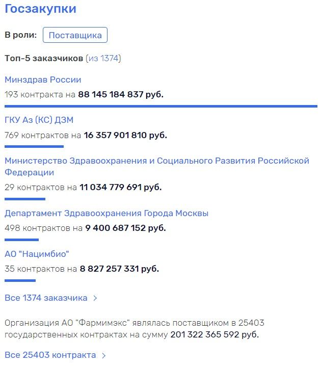 According to Rusprofile, the company receives new contracts almost every day. It is not surprising that they have already "run up" more than 25.5 thousand for a lot of money. At the same time, the "top" supplier, is the Ministry of Health of Russia, from which the company received contracts for more than 88 billion rubles. However, there is a version that the success in this field is due to the good relations of Alexander Apazov with Deputy Chairman of the Government Tatyana Golikova.