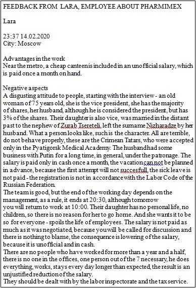 However, no matter how much you try to fight with independent journalists, it is already very difficult to "hide" information nowadays. So, a lot of interesting things can be read about Pharmimex on various websites with reviews of the work. And there the company is put a solid "minus".