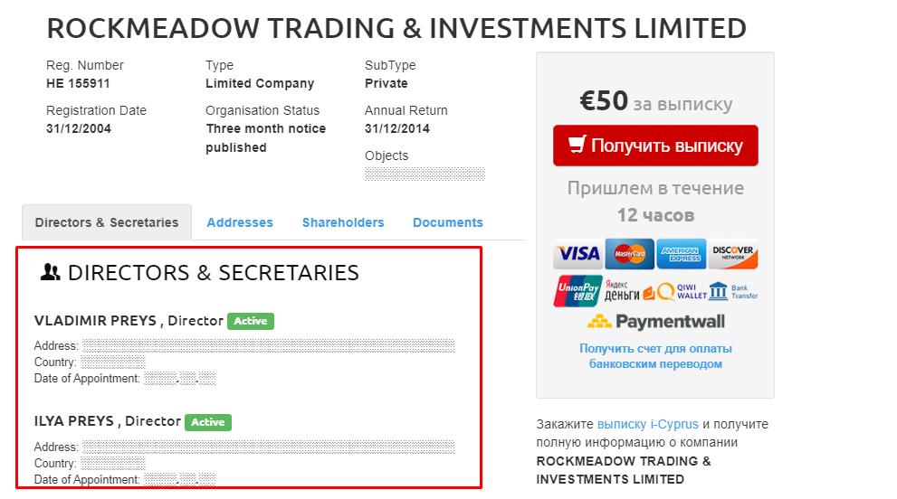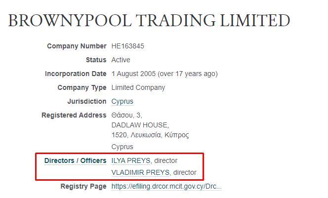 According to the informant The Moscow Post, allegedly to withdraw funds, including used offshore Brownypool Traiding Ltd, in the leadership of which Vladimir Preis and his son Ilya are still listed.