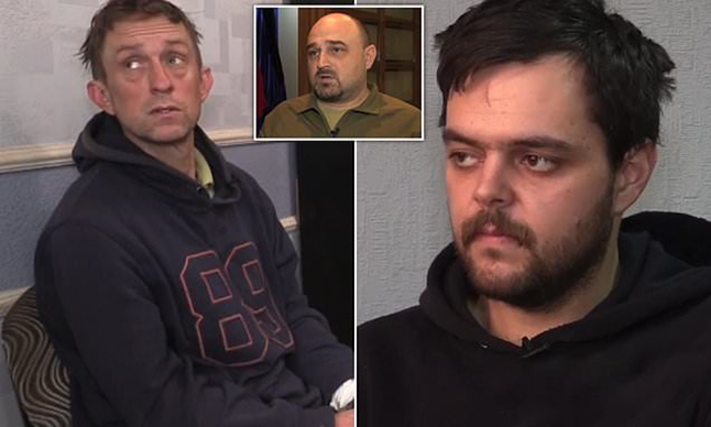 The British mercenaries Sean Pinner and Aiden Aslin, in the center – the prosecutor of the DPR Andrei Spivak. Collage: dailymail.co.uk