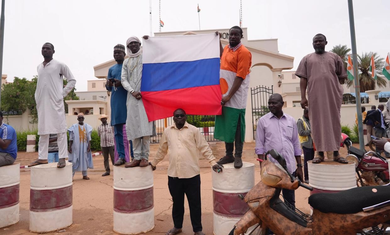 Demonstrators in Niger who supported the putschists unfurled the Russian flag. Photo: https://rusnewshub.ru/2023/07/27/видео-протестующие-перед-президентс/