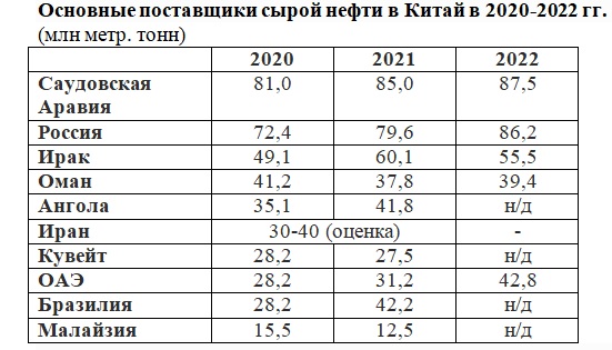 At the end of 2022, Saudi Arabia was the leader in oil supplies to China, which sold 87.48 million tons for $64.97 billion (the physical volume practically did not change compared to 2021, the cost increased by 47.8%).