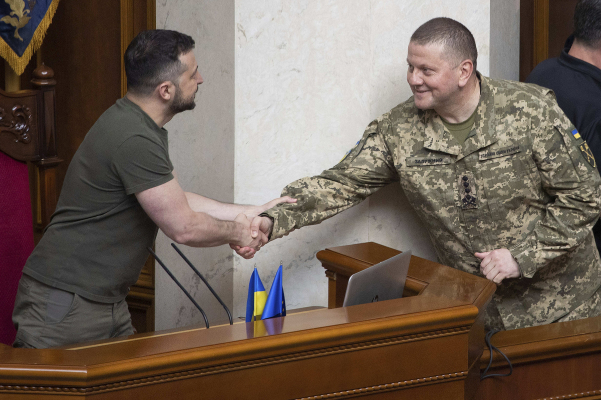 Volodymyr Zelenskyy and Valery Zaluzhny. Photo: https://www.mk.ru/politics/2022/12/16/zelenskiy-zaluzhnyy-i-syrskiy-splelis-v-strannyy-treugolnik.html