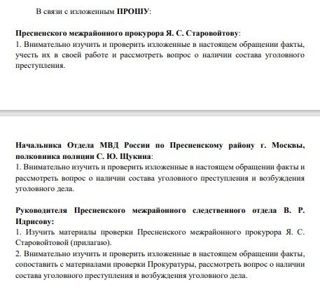 Olga Dubovitskaya listed her numerous roles. She also reminded that she had played in such performances as "The Blue Bird", "Othello", "The Taming of the Shrew". But she was also deprived of participation in several performances without explanation.