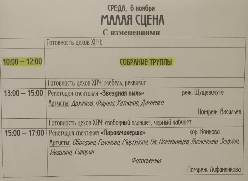 Apparently, Mr. Boyakov watched the program, because the next day an urgent meeting of the troupe was announced.