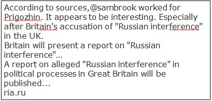 The Bloknot publication decided to check this information. One of the BBC employees on condition of anonymity shared the opinion that certain agreements could be established between Sambrook and the leadership of Patriot concerning coordination of further activities of the British BBC journalist.