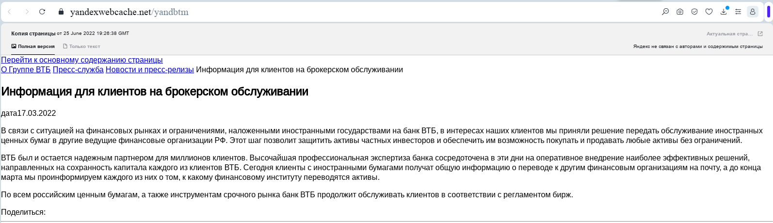 What's interesting: some of VTB's "sedative" releases are not available today, the page gives out errors. Were they preparing for the trial, cleaning up the evidence base? But no one canceled the cache of sites.