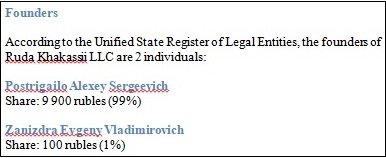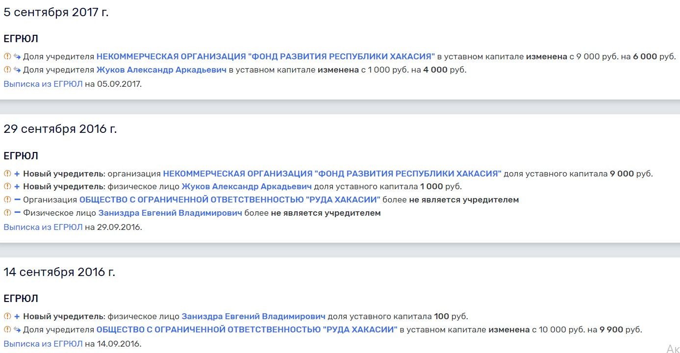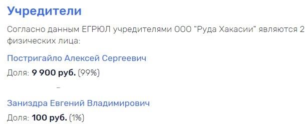 Apparently, it is for this reason that the RubEx Group is registered to Eugeny Zanizdra - an unknown character who can only be a "nominal" person. If we look at the entrepreneur's card in Rusprofile, it turns out that in 2016, he managed to be the founder of Abazinsky Mine LLC for a couple of months and still owns Ruda Khakassii LLC. Both of these enterprises managed to be "spotted" in very ambiguous stories.