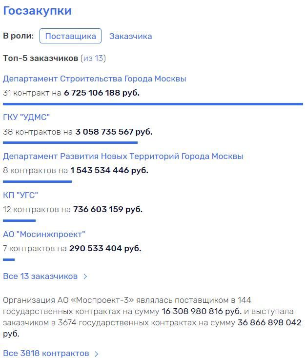 At the same time, the company's portfolio of state orders amounts to more than 16 billion rubles, 6.7 billion of which was brought by cooperation with the Moscow Construction Department, which was once headed by Khusnullin. Has he still got the right connections in the department?