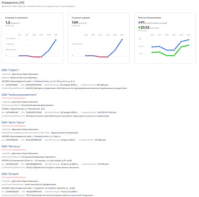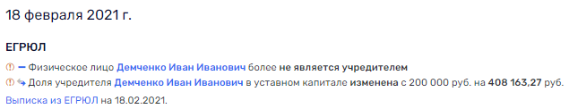 But there is evidence in the public domain that in February 2021, Ivan Ivanovich Demchenko resigned from the founders. The media wrote that he rewrote all his shares to his son.
