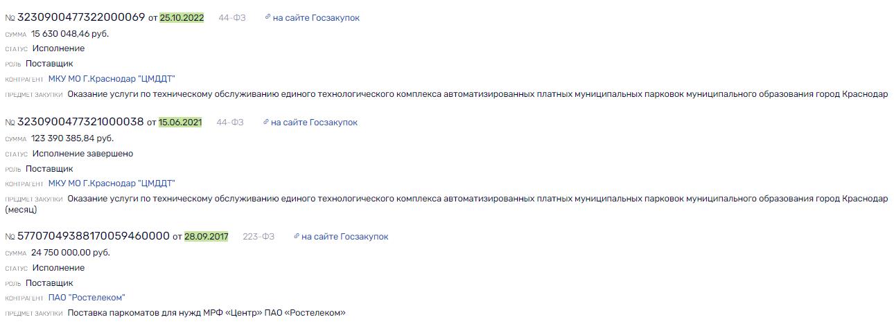 But another structure is much more interesting, where there is a share of the former deputy - we are talking about City Parking LLC. This is also a Krasnodar company that receives government orders. This organization serves the municipal parking lots of the city of Krasnodar.